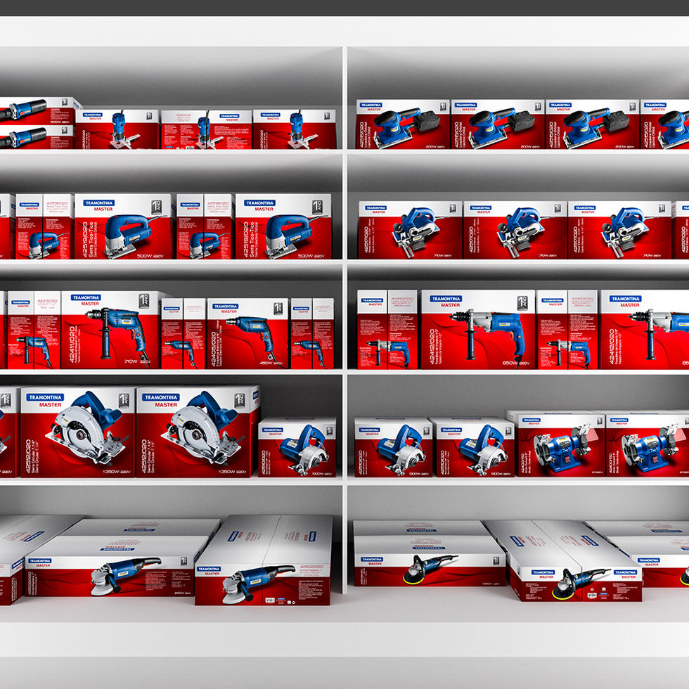 A Tramontina Master é uma submarca da Tramontina focada em ferramentas para profissionais da construção civil. O desafio deste projeto foi a criação da identidade visual da nova linha de ferramentas elétricas, criação das embalagens e estratégias de diferenciação para o ponto de venda. O projeto foi desenvolvido no departamento gráfico da Tramontina Garibaldi S. A. Ind. Met.